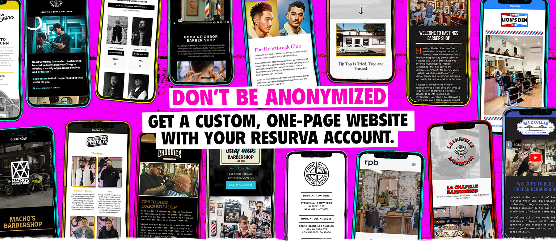 Don’t be Anonymized, Get a custom one page website with your Resurva subscription.