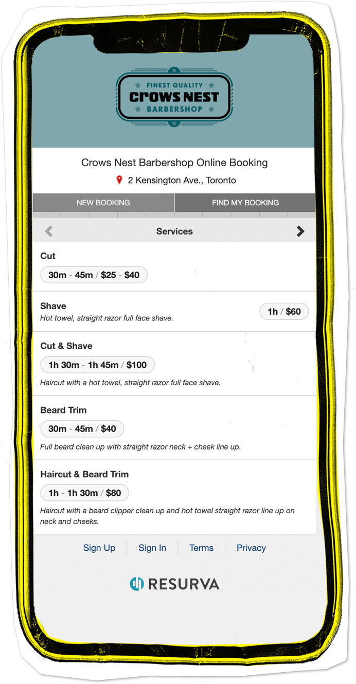 In August of 2011 we launched Resurva with our one and only client: Crows Nest Barbershop, Kensington Market, Toronto. For the first few weeks after launch we went to the shop, sat with the dudes to improve the flow and even answered the phone to help clients book in.